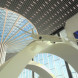 Мощные колонны-турбины поддерживают легкие световые фонари, благодаря которым кровля кажется легкой