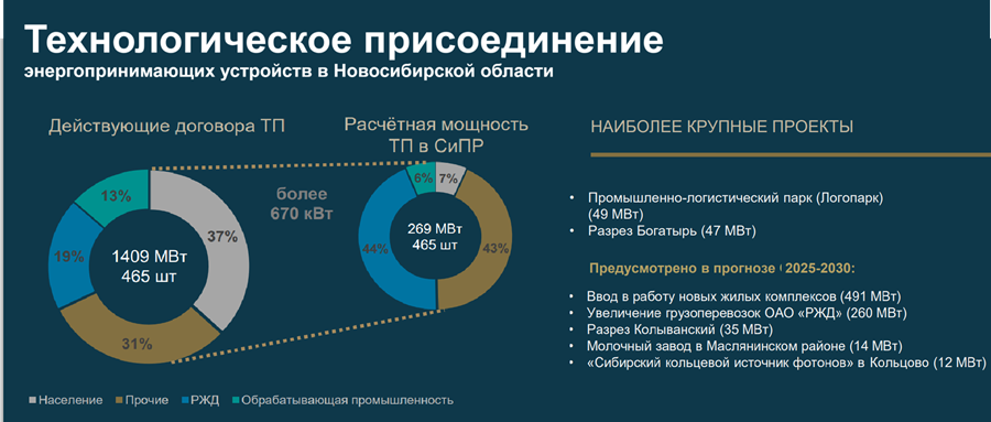 Ожидается, что к 2030 году в Новосибирской области потребление мощности к показателям прошлого года вырастет на 12,6% за счет запуска новых проектов и роста ввода жилья.