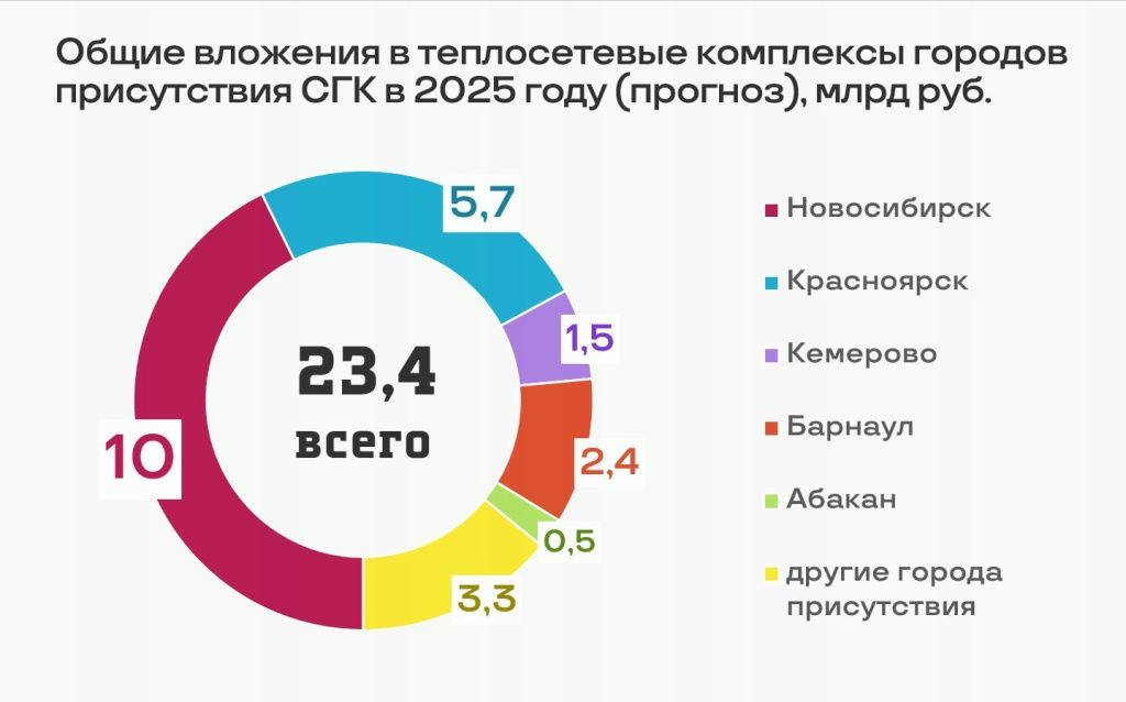 Объем вложений в обновление теплосетей 17 городов Сибири в 2025 году составит около 24 млрд рублей — с приростом к прошлому году 38%, сообщил директор по тепловым сетям СГК Антон Баев.