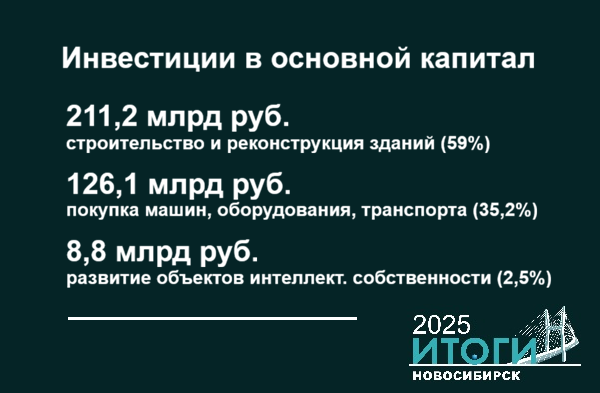 За девять месяцев текущего года объем инвестиций в основной капитал Новосибирской области составил 358,1 млрд руб., что на 6,3% меньше показателей аналогичного периода 2024 года. Новосибирская область по этому показателю занимает третье место в Сибири, уступая Красноярскому краю и Иркутской области.