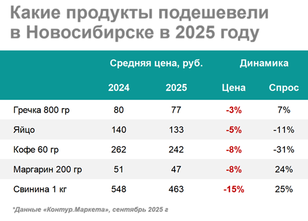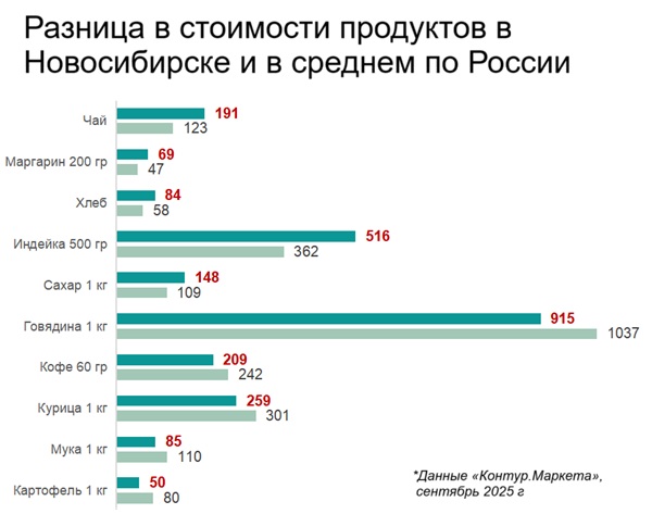 Есть ряд продуктов, которые в Новосибирске стоят значительно дороже, или наоборот, дешевле чем в среднем по России.