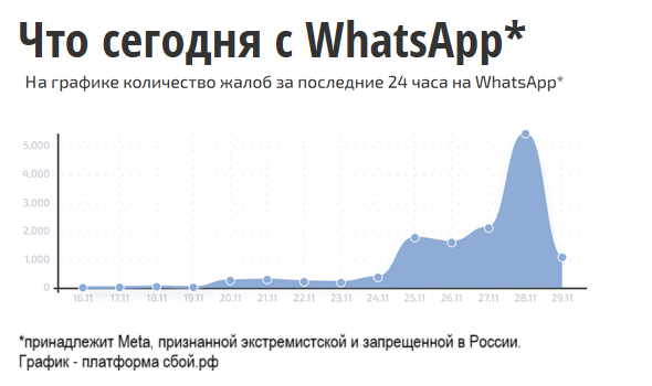 В Новосибирской области сбой WhatsApp фиксируют практически всю неделю, во вторник, 25 ноября, число жалоб от пользователей, по данным платформы сбой.рф, резко взлетело.